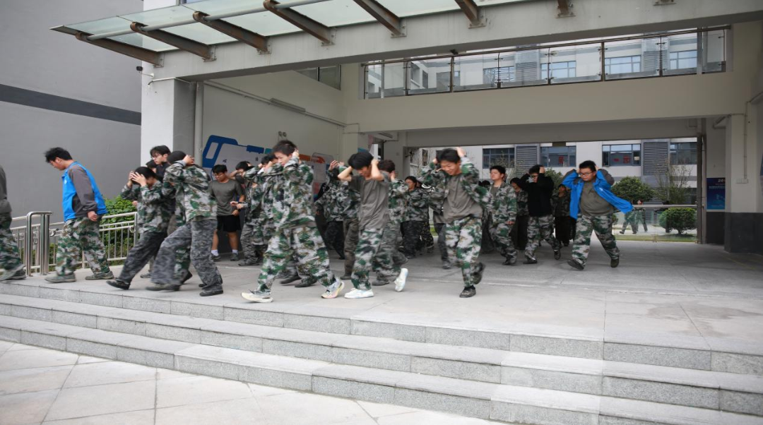 上午9时18分,随着急促的防空警报声响起,校园里瞬间紧张起来。同学们在老师的带领下,弯腰低身、护住头部,沿着既定路线快速、有序地撤离。整个过程井然有序,充分展现了我校师生应急避险的能力和良好的纪律性。