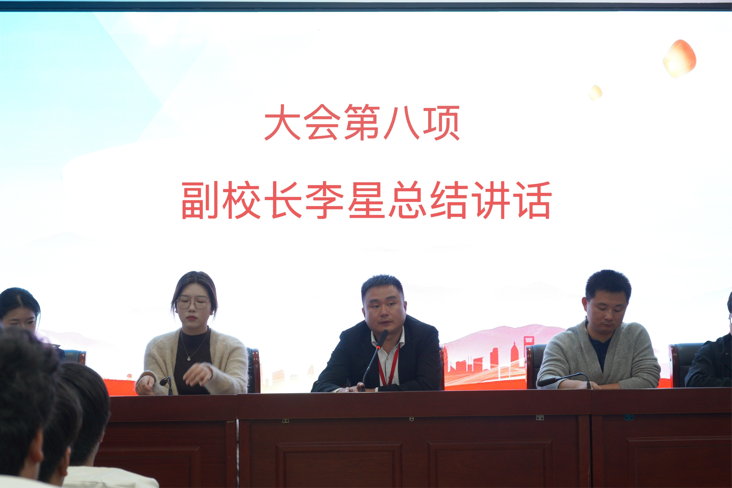 副校长李星作总结讲话。他充分肯定了第二届学生会的工作成绩与无私奉献,并对新一届成员提出三点希望:一要坚定理想信念,服务同学成长;二要勇于担当作为,提升工作实效;三要加强自身建设,树立清新形象。他强调,学生会是学校联系广大同学的桥梁和纽带,希望新团队不负师生期待,焕发新活力,展现新作为。
