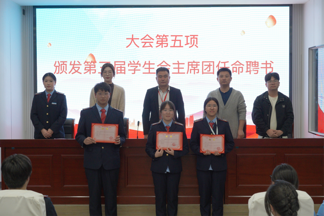 随后,团委书记李卿宣读了第三届学生会主席团成员及各部门部长的任命决定,明确了新一届学生会的组织架构与职责分工,并为新任主席团成员颁发聘书。一纸聘书,承载着信任与责任,也标志着学生会工作的接力与传承。