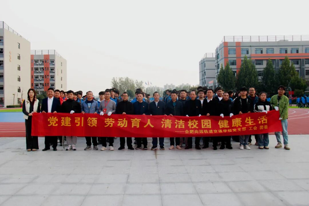 为以崭新的校园风貌迎接首届校园体育文化艺术节暨第三届秋季田径运动会,2025年10月27日下午,合肥向远轨道交通学校组织开展了一场大规模义务劳动。全体行政干部、共产党员及青年团员积极响应,踊跃参与,对校园环境进行了一次彻底的清洁美化。