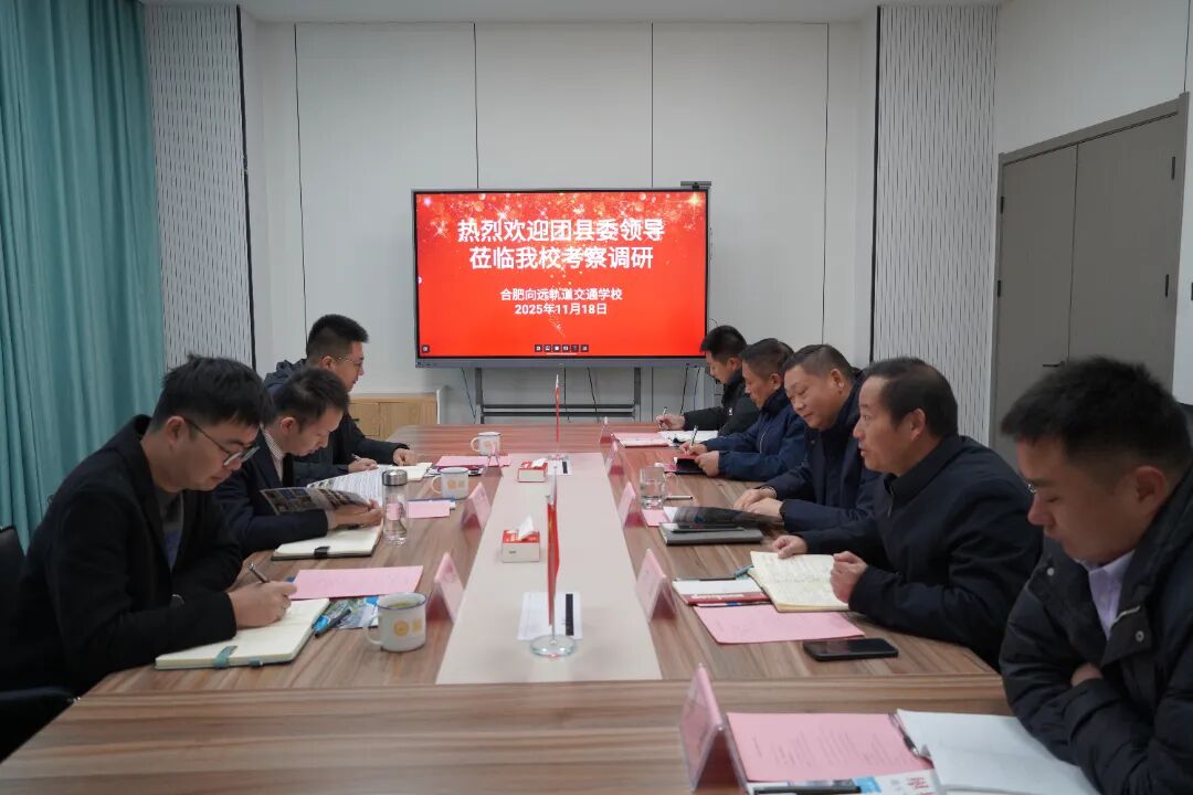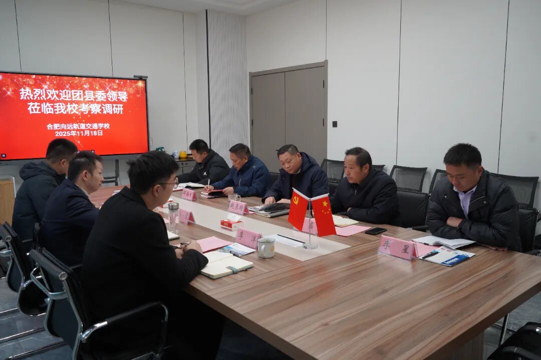 2025年11月18日上午,共青团长丰县委员会书记孙霄、副书记李圆梦、组宣联络部部长李洋一行莅临合肥向远轨道交通学校,专题考察调研学校共青团建设工作。校长赵来明、党支部书记兼副校长方盛、常务副校长邵梅生、副校长李星及校团委书记李卿陪同考察调研并参加座谈。