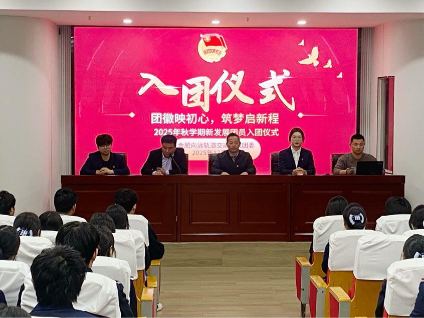 为深入学习贯彻党的二十届四中全会精神,认真落实共青团中央相关部署,进一步加强青少年思想政治引领,2025年12月10日下午,合肥向远轨道交通学校团委在向善楼报告厅举行2025年秋学期新团员入团仪式。学校党支部书记方盛,副校长李星,团委书记李卿、团委委员王伦老师、王真真老师及全体新团员及团干参加会议,仪式由团委书记李卿主持。