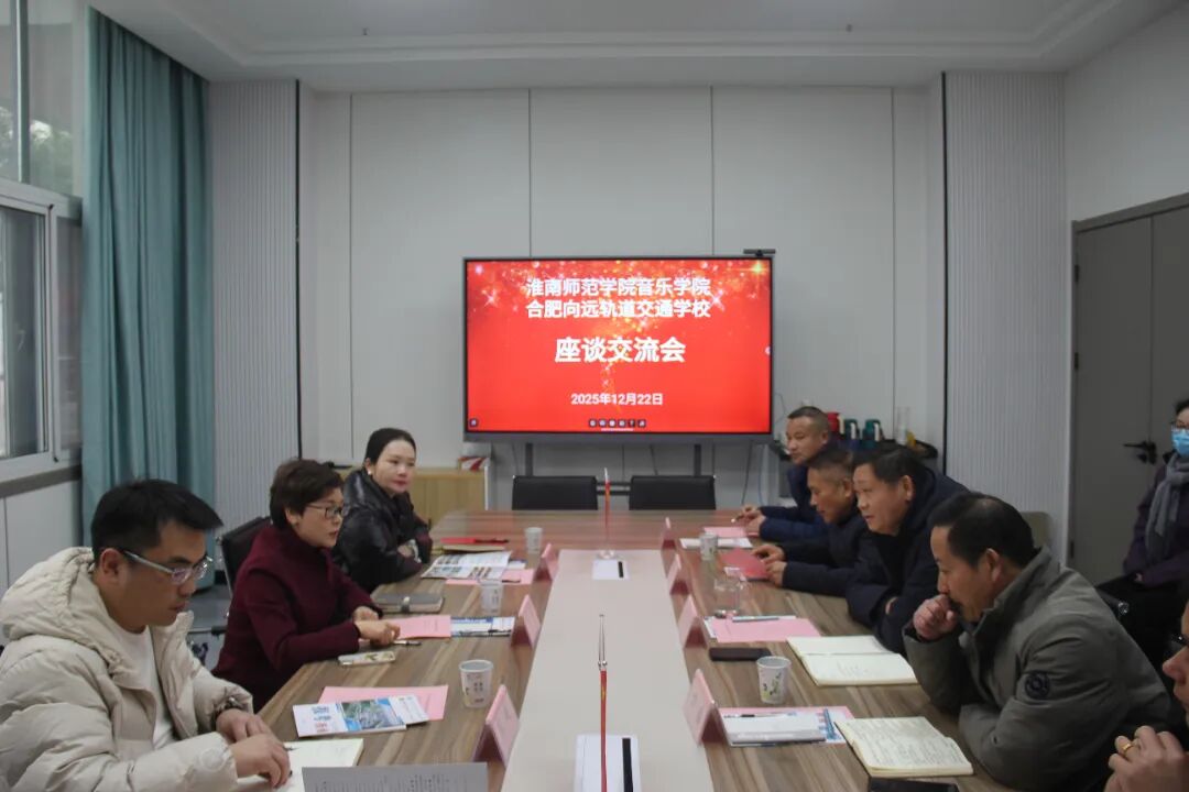 为深化校际合作,推动教育资源共享与协同发展,2025年12月22日,淮南师范学院音乐学院院长宁萌、副院长胡曼丽、音乐表演系主任张延一行到访合肥向远轨道交通学校,开展交流座谈。合肥向远轨道交通学校校长赵来明、党支部书记兼副校长方盛、常务副校长邵梅生、副校长李星及党政办主任孔令明等热情接待。