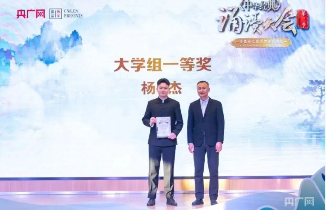 杨杰同学的优异成绩,既是其个人勤奋钻研、深耕经典的成果,也彰显了我校在中华优秀传统文化教育方面的扎实成效。下一步,我校将继续以弘扬中华优秀传统文化为己任,依托各类优质赛事资源与专业指导力量,搭建更多高质量的诵读交流平台,发掘和培育更多青年诵读人才,引导广大毕业生在声声诵读中传承文化根脉、讲好江淮故事,为推动安徽文化事业繁荣发展贡献青春力量!