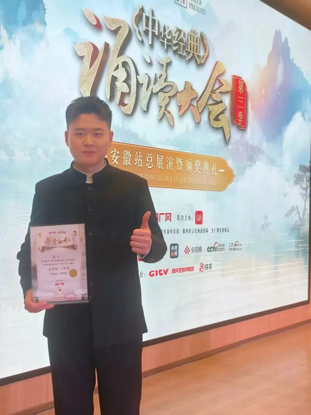 近日,中华经典诵读大会(第三季)安徽站总决选暨颁奖典礼在滁州圆满落幕。我校毕业生杨杰凭借深厚的诵读功底与出色的舞台表现力,在激烈角逐中脱颖而出,成功摘得大毕业生组唯一一等奖。