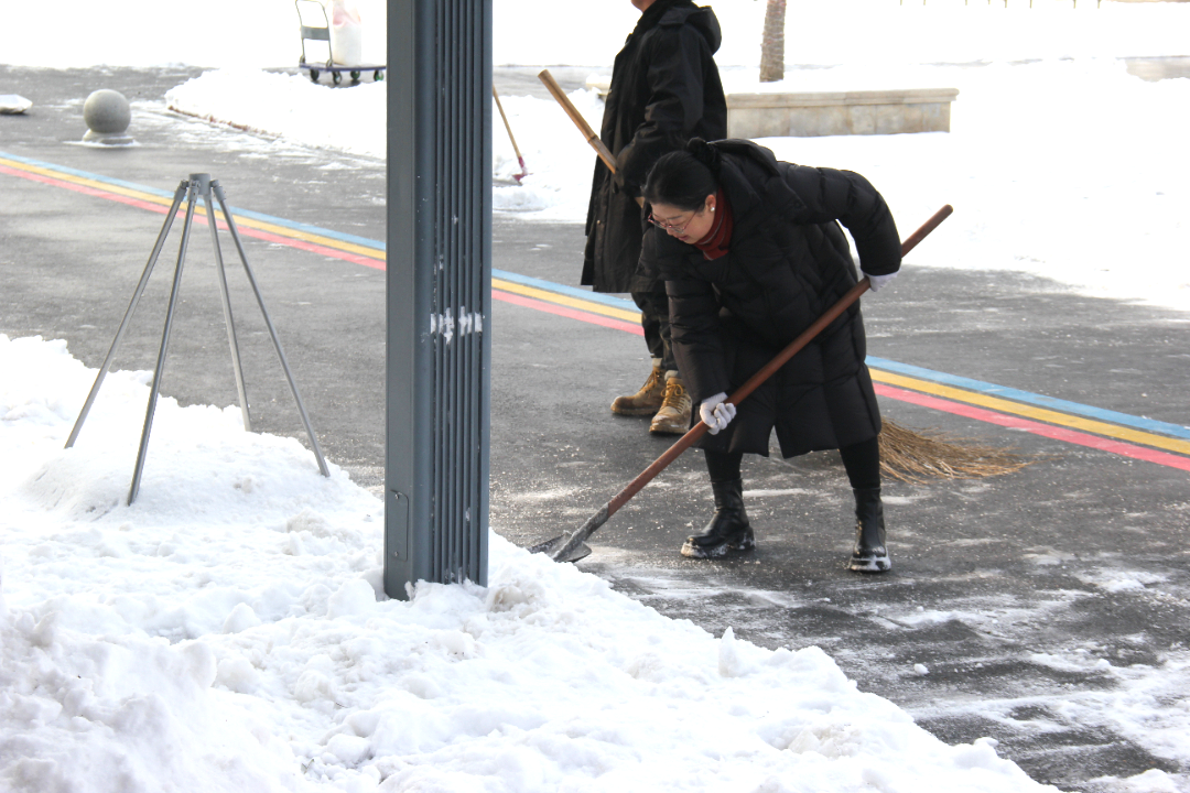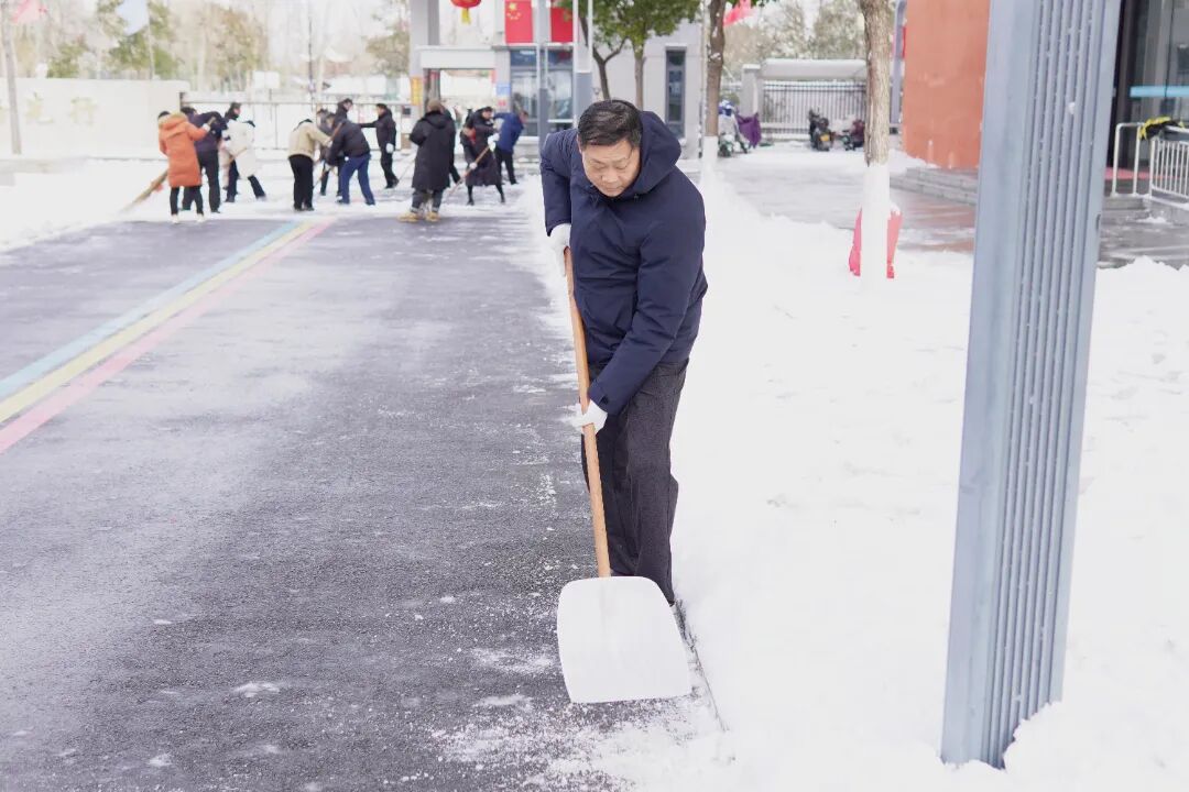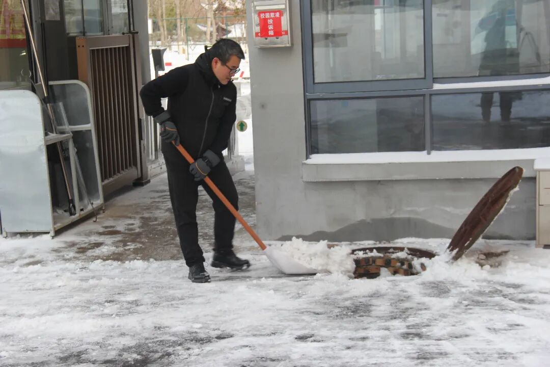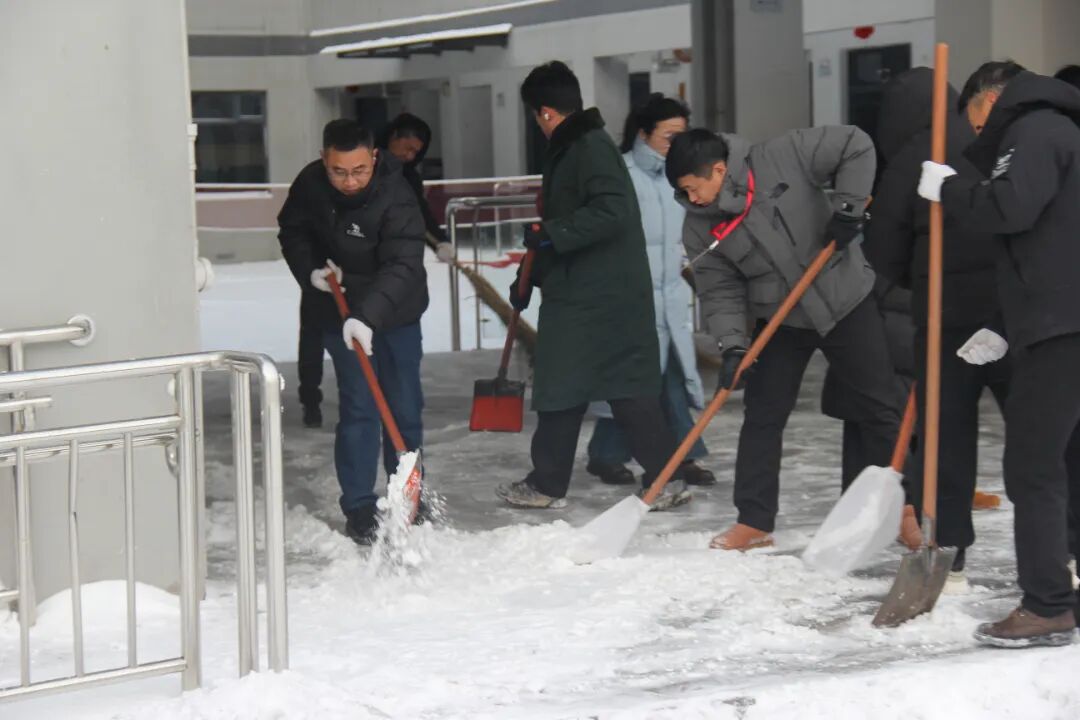风雪虽寒,人心炽热。这场井然有序的集体行动,不仅是应急能力的实战检验,更是党员干部担当作为的生动写照。他们以行动代替言语,将服务融入细节,在冰天雪地中为学生上了一堂“行走的思政课”——责任,就印刻在扫净的每一步路上。