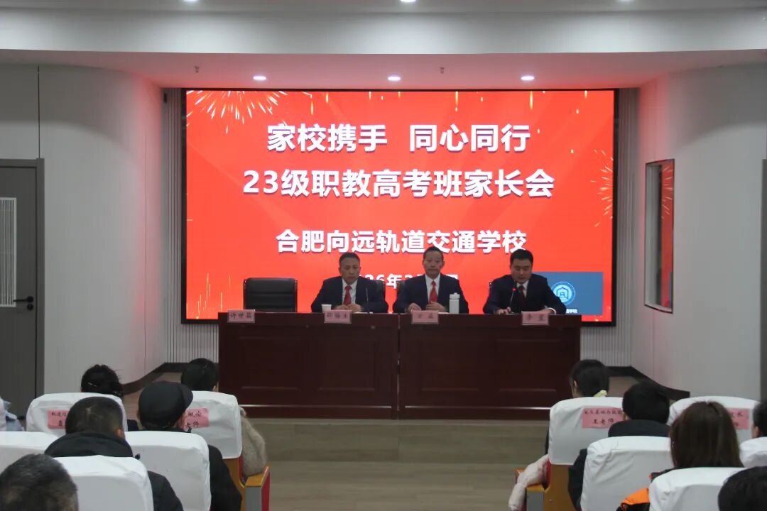 为落实学校“985”工作体系要求,进一步强化家校协同育人机制。2026年2月6日上午,合肥向远轨道交通学校圆满召开23级对口高考班家长会。会议以“家校携手,同心同行”为主题,采取线上线下结合方式进行。党支部书记、副校长方盛;常务副校长邵梅生;班主任、任课教师及23对口高考班全体家长参加会议,会议由副校长李星主持。