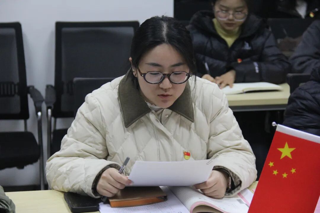 会议严格落实“第一议题”制度。党务工作者董婉玉领学习近平总书记关于树立和践行正确政绩观的重要论述,引导全体党员深刻把握“政绩为谁而树、树什么样的政绩、靠什么树政绩”的核心要义,进一步筑牢思想根基、校准价值航向。党支部组织委员李兴志、宣传委员祝建有依次传达上级会议部署精神,领学党的二十届四中全会精神及中纪委全会公报,推动全体党员把思想和行动统一到上级决策部署上来。