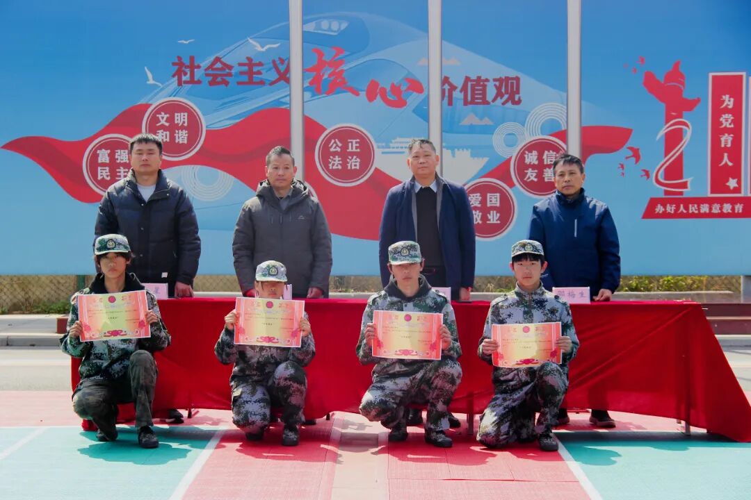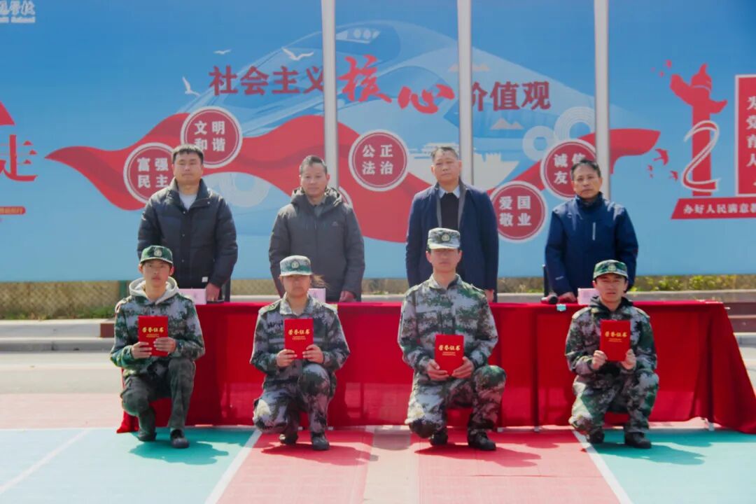 大会对表现突出的集体和个人进行表彰。获奖学生代表手持奖状,眼神坚定。素质拓展训练教会他们的,不只是队列动作,更是团结奋进遵纪守规的意识。