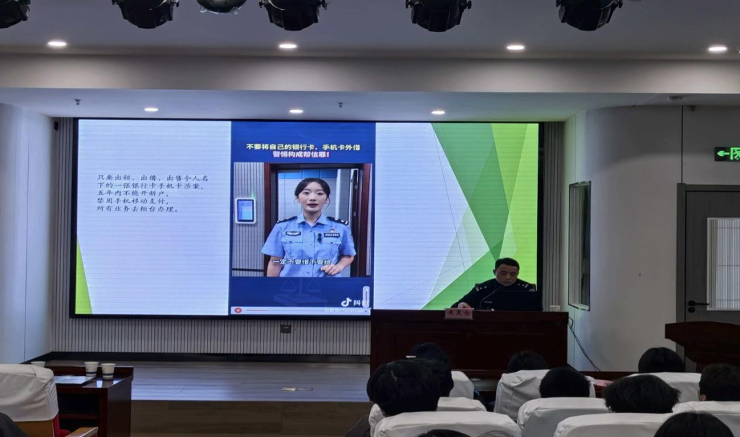 讲座中,黄所长结合真实案例,剖析了刷单返利、“两卡”外借等学生易陷的诈骗套路,详细讲解“帮信罪”法律后果,现场传授“不轻信、不透露、不转账”防骗口诀,提醒学生守好“钱袋子”。