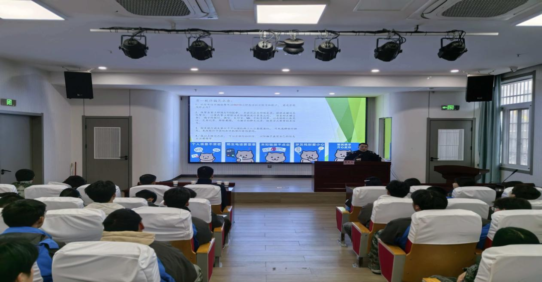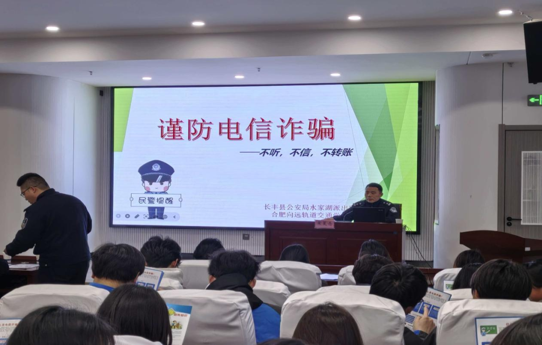 为落实“985”工作体系要求,2026年3月19日,合肥向远轨道交通学校特邀长丰县公安局水家湖派出所副所长、学校法治副校长黄夏念为师生代表带来“安全第一课”。