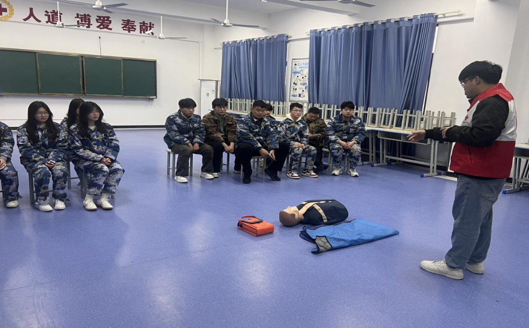 演练前,学校红十字会志愿者以“生命至上,安全第一”为主题,开展了急救与消防知识专题培训。讲师围绕心肺复苏(CPR)操作规范、自动体外除颤器(AED)使用、火场逃生技巧等内容进行细致讲解,通过模拟人演示让参训人员直观掌握“判断意识—胸外按压—开放气道—人工呼吸”等关键步骤,为后续实战演练打下坚实理论基础。