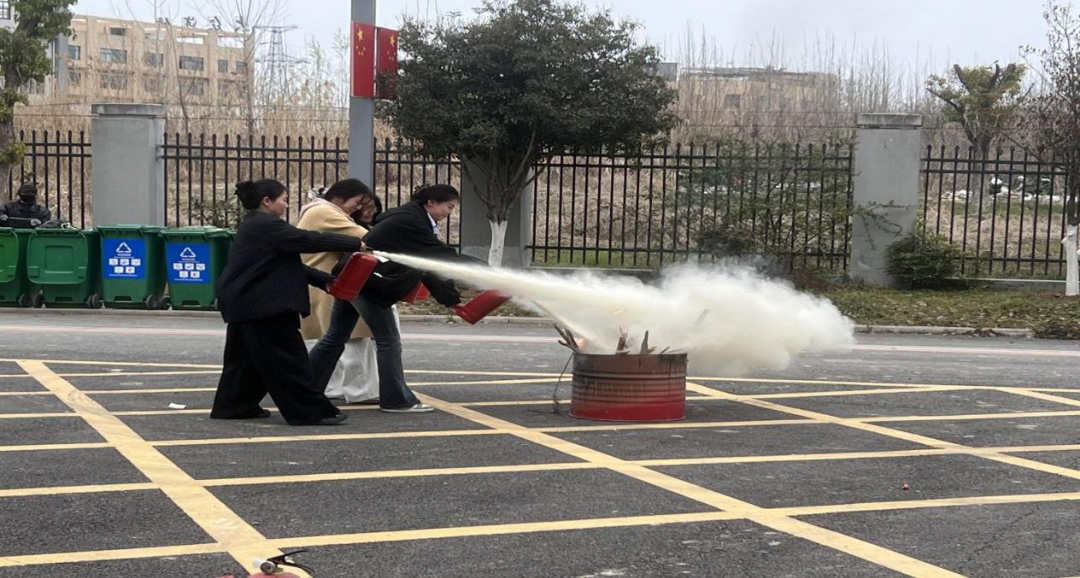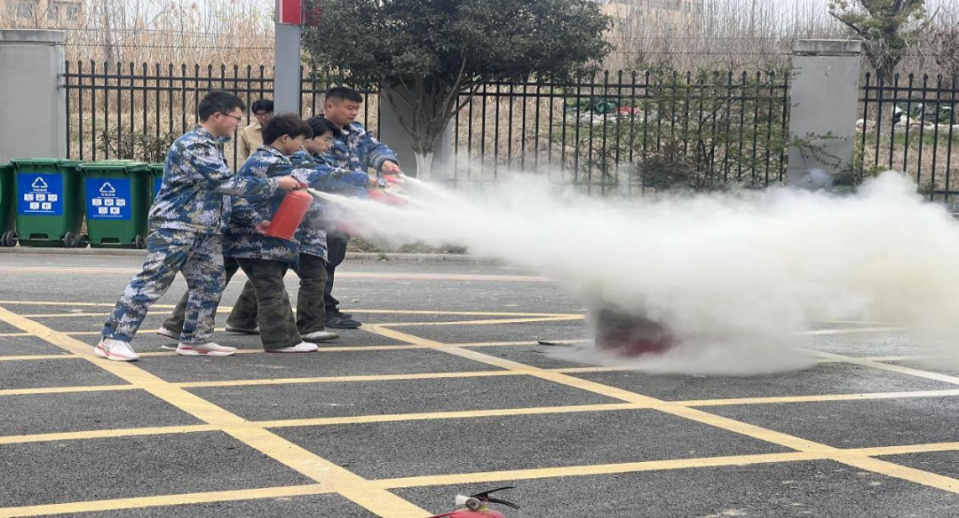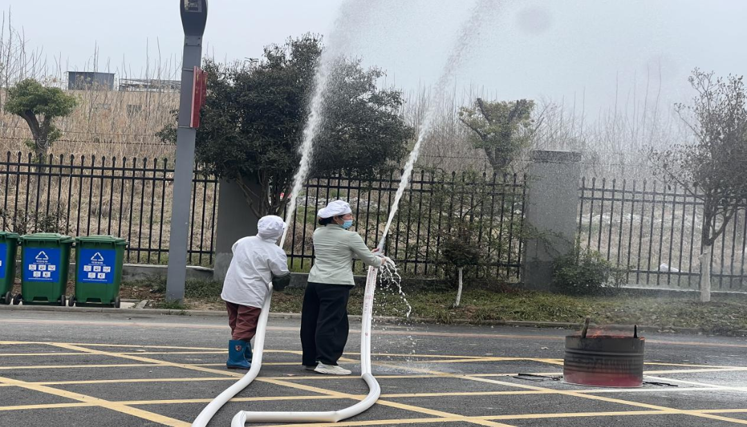 演练进入实操环节,在保卫科丁科长指导下,参训人员依次使用干粉灭火器,按照“提、拔、握、压”标准流程,对准油桶火源根部进行喷射,亲身体验初期火灾扑救要点。同时组织参训人员分组进行水带快速铺设、接口连接与水枪出水训练。