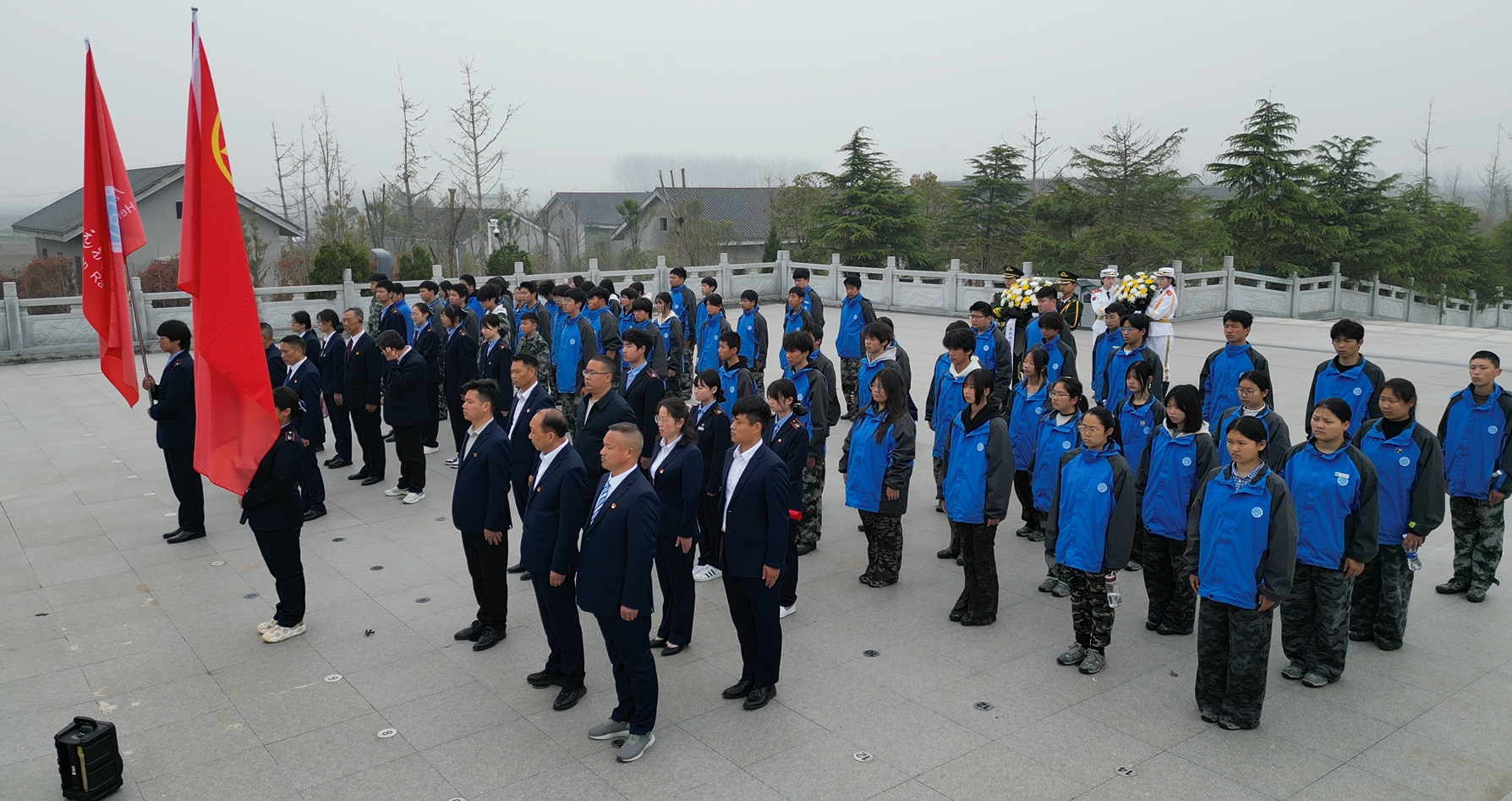 在烈士陵园,全体师生肃立默哀,敬献花篮,深切缅怀革命先烈。党支部书记方盛发表讲话,勉励师生传承红色基因、赓续精神血脉。团员代表发言,表达技能报国之志。