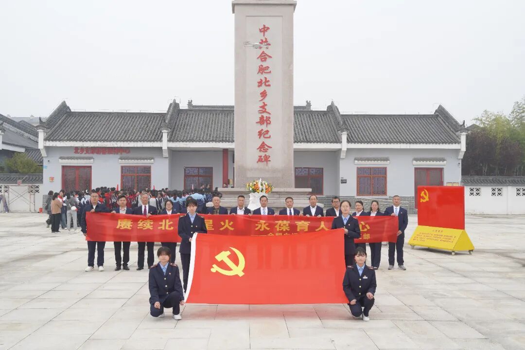 随后,队伍前往中共合肥北乡支部纪念馆。全体党员在党旗前重温入党誓词,团员庄严宣誓。在讲解员带领下,师生们聆听合肥地区第一个党组织的创建历程,瞻仰珍贵文物与历史照片,接受深刻红色洗礼。